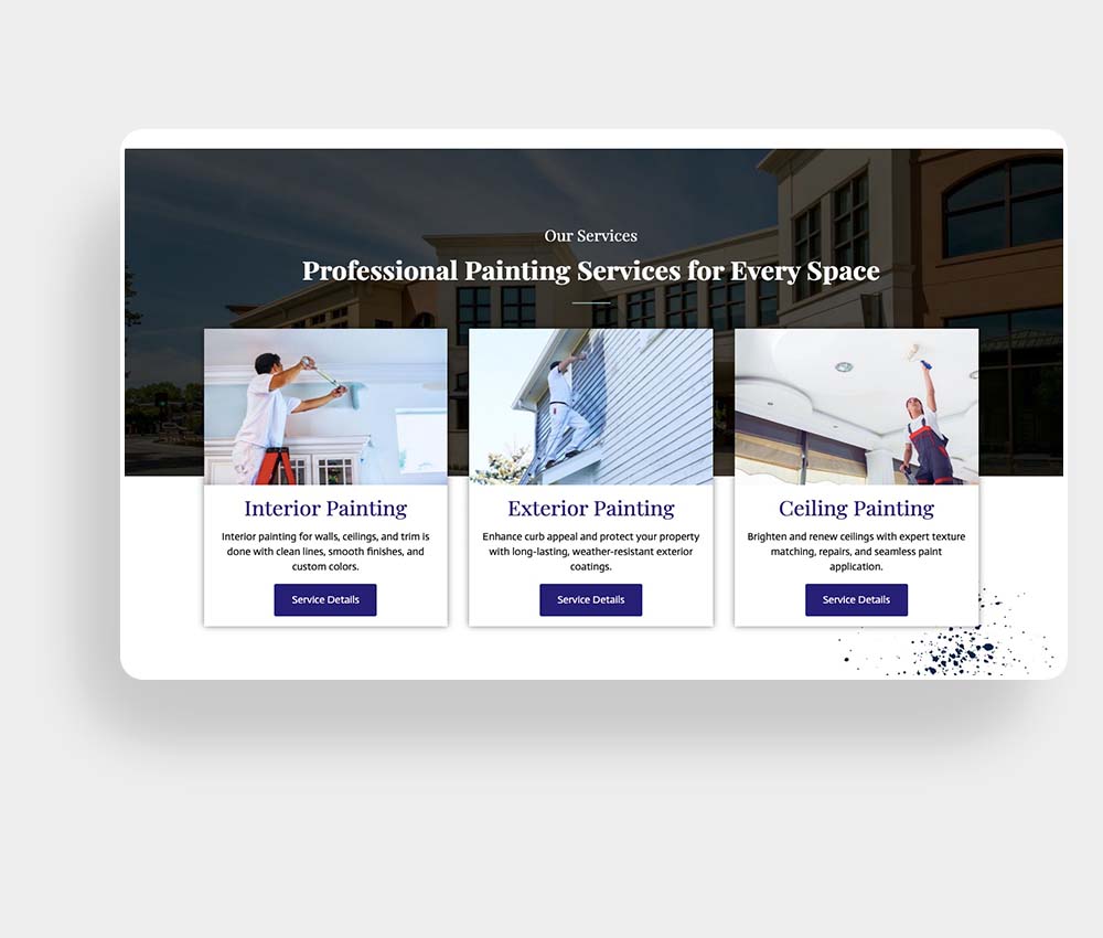 We built a new website focused on clarity, SEO, and local visibility. The site includes organized service pages for interior and exterior painting, a contact form, and a gallery for completed projects. Our team handled all keyword research, competitor analysis, and optimization for search engines.