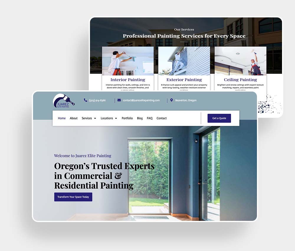 The result was a complete online ecosystem where Juarez Elite Painting could manage inquiries, showcase their work, and appear professional to new clients.