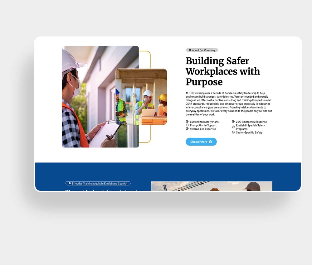 With a modern design, stable hosting, and consistent branding, RTP Safety Consultation has the structure it needs to continue growing and serving construction companies nationwide.