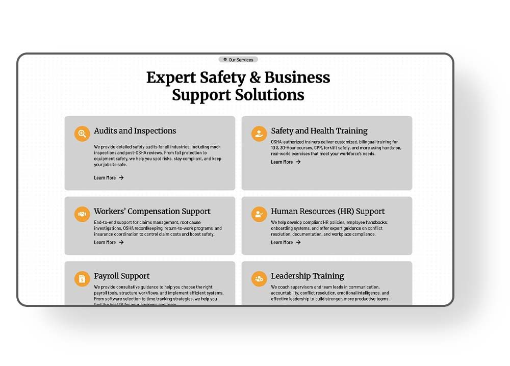 The result was a clean, professional website that clearly explained the company’s safety training, inspection, and compliance services.